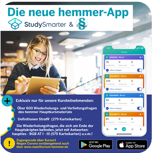 Für alle Studierenden, die hemmer.club-Mitglied sind: Kostenoser Gutscheincode für die hemmer Lernapp